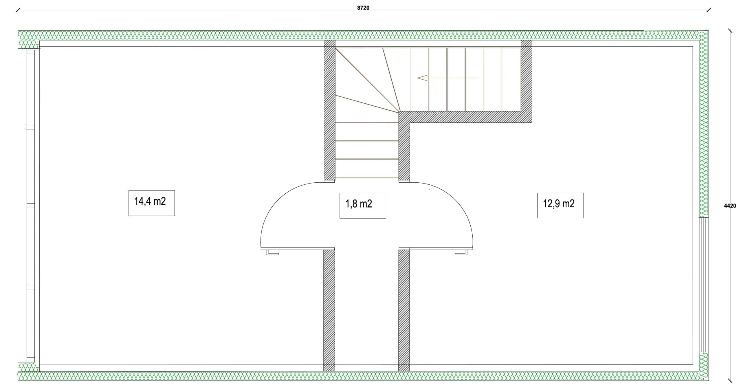 • Wymiary zewnętrzne: 4,42 x 8,72 m